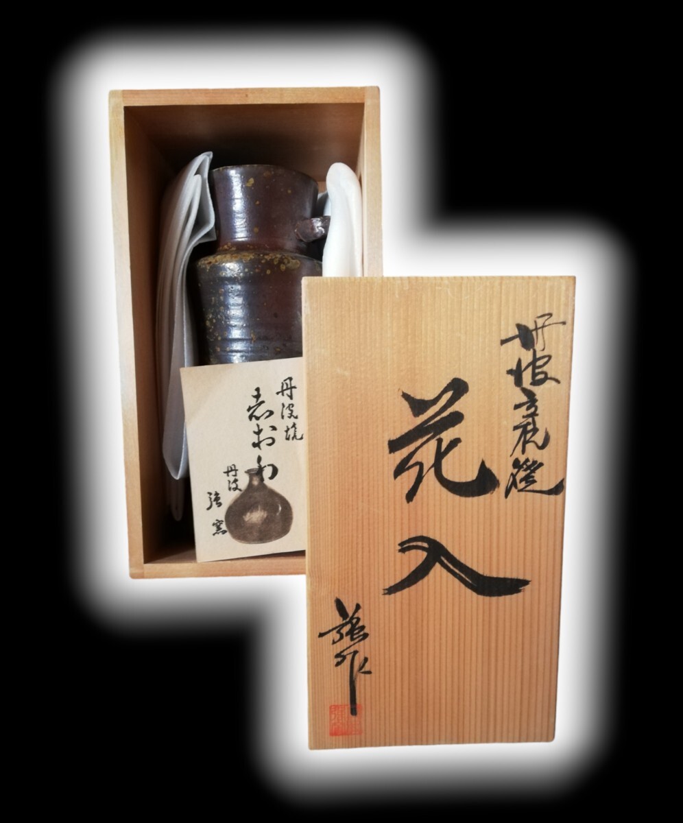 - 【未使用品】 丹波焼 伝統工芸品 花入 花瓶 花器 共箱入り 骨董 レトロ アンティーク