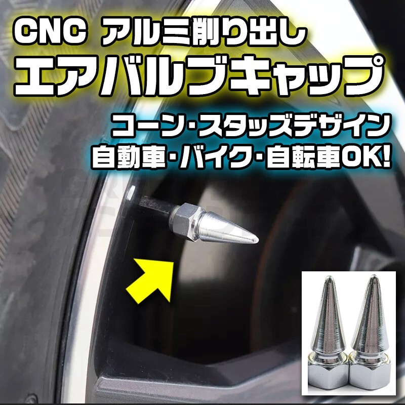 - CNC エアバルブキャップ アルミ削り出し パイクナット シルバー 2個セット