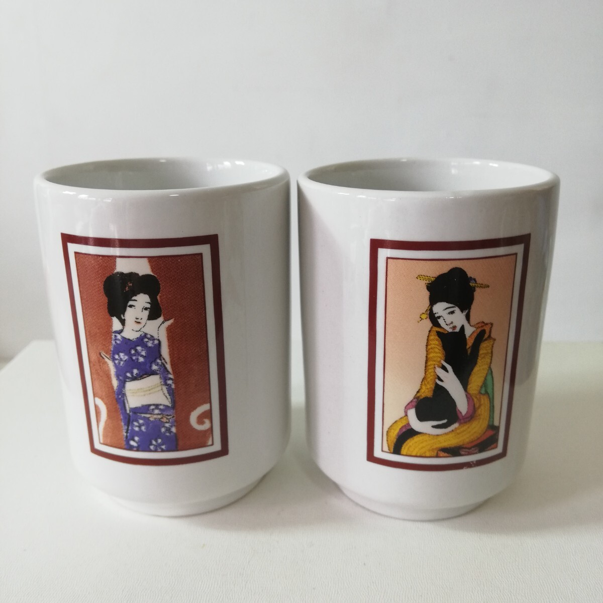 - 竹下夢二 絵画湯呑二客揃 湯呑 直径6cm×高さ8.4cm 2点セット 未使用品 [黒船屋 茶器 湯呑み 湯のみ 煎茶器 和食器]