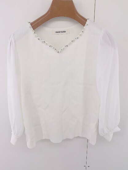> ◇ misch masch ミッシュマッシュ 装飾 七分袖 ニット カットソー サイズM オフホワイト系 レディース E