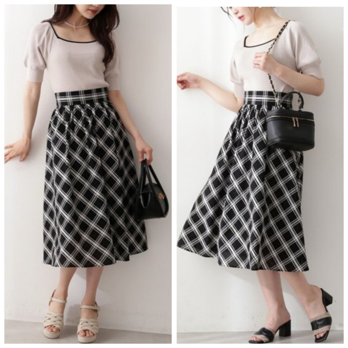 - 未使用*PROPORTION BODY DRESSING*プロポーションボディドレッシング*シアーチェック*ギャザースカート*フレアミディ丈*ロング*白黒*洗える