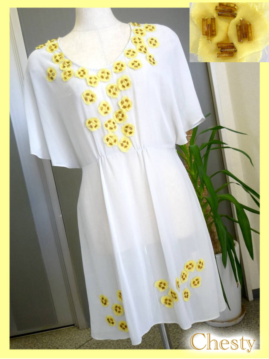 > Chesty チェスティ 透け感 シースルー シフォン チュニック ブラウス ワンピース サイズ1 薄いブルー 黄色 花 可愛い 夏 涼しげ 定形外OK