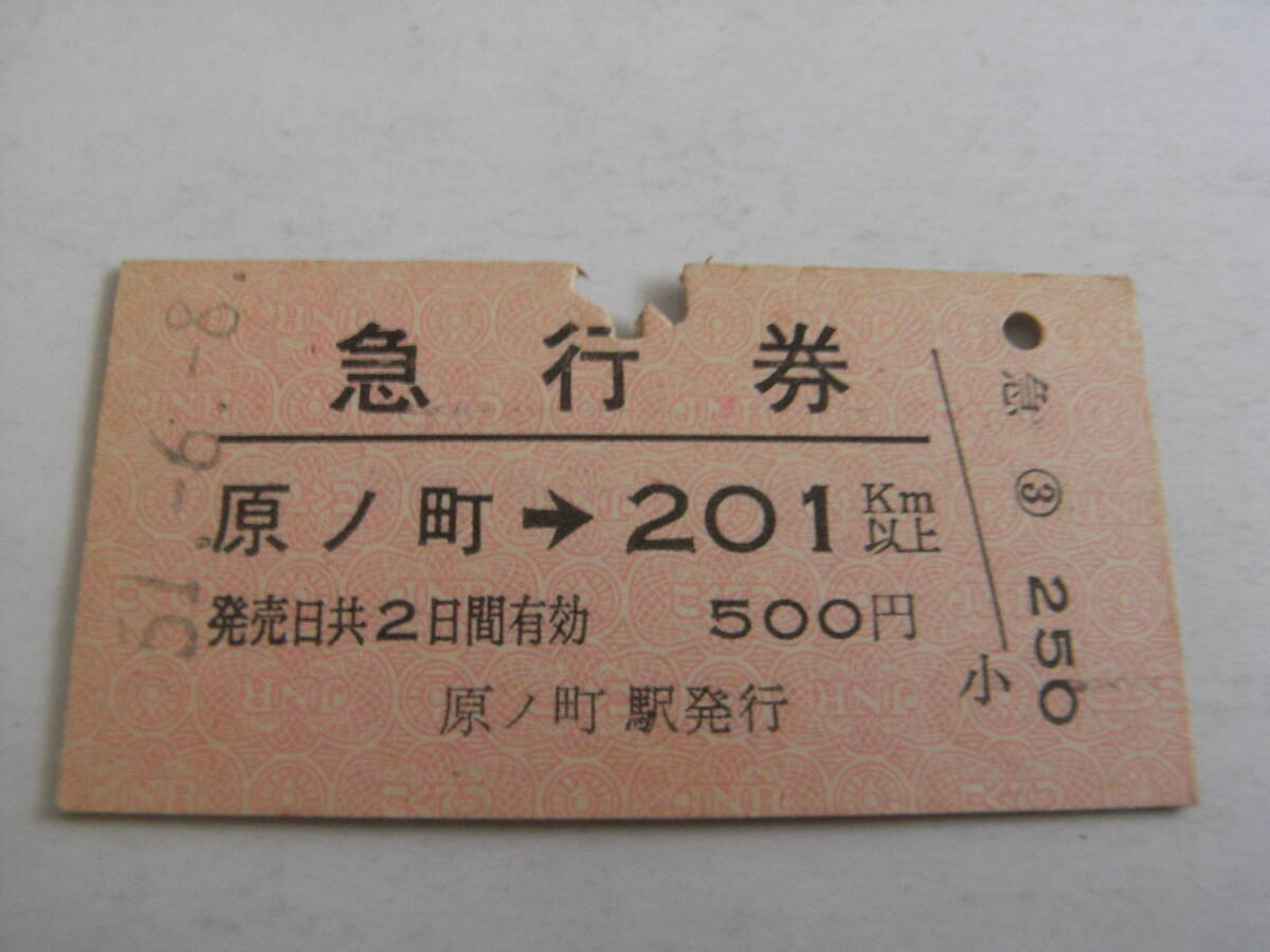 - 急行券 原ノ町→201km以上 昭和51年6月8日 原ノ町駅発行 国鉄
