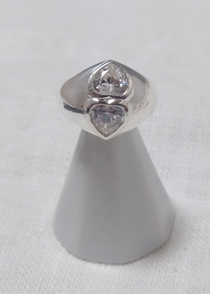 - シルバー リング SILVER 825 ハート型ジルコニア アクセサリー 15号 管理R-54