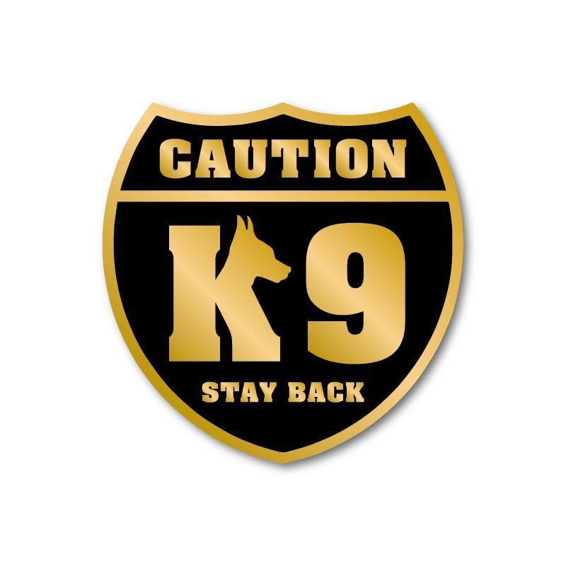 - (マットゴールド)ちょっと面白 K9ステッカー 8cm 金フチブラック 犬 警察 アメリカン