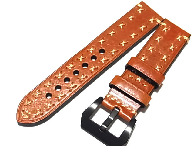 - 手縫い ハンドメイド クロス縫い オレンジブラウン オイルドレザー 22mm 2MXL18(パネライなどに)