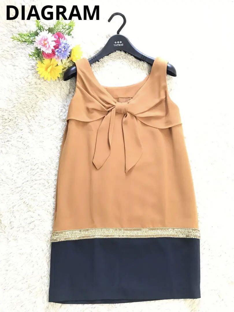 - DIAGRAM 茶&黒ツートーン ミニ丈ワンピース ラインストーン リボンタイ