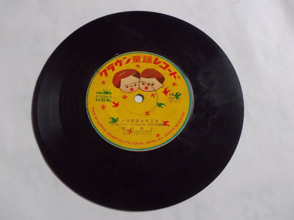 - 中古EPレコード 「リンゴのひとりごと」「赤い帽子 白い帽子」 ジャケットなし