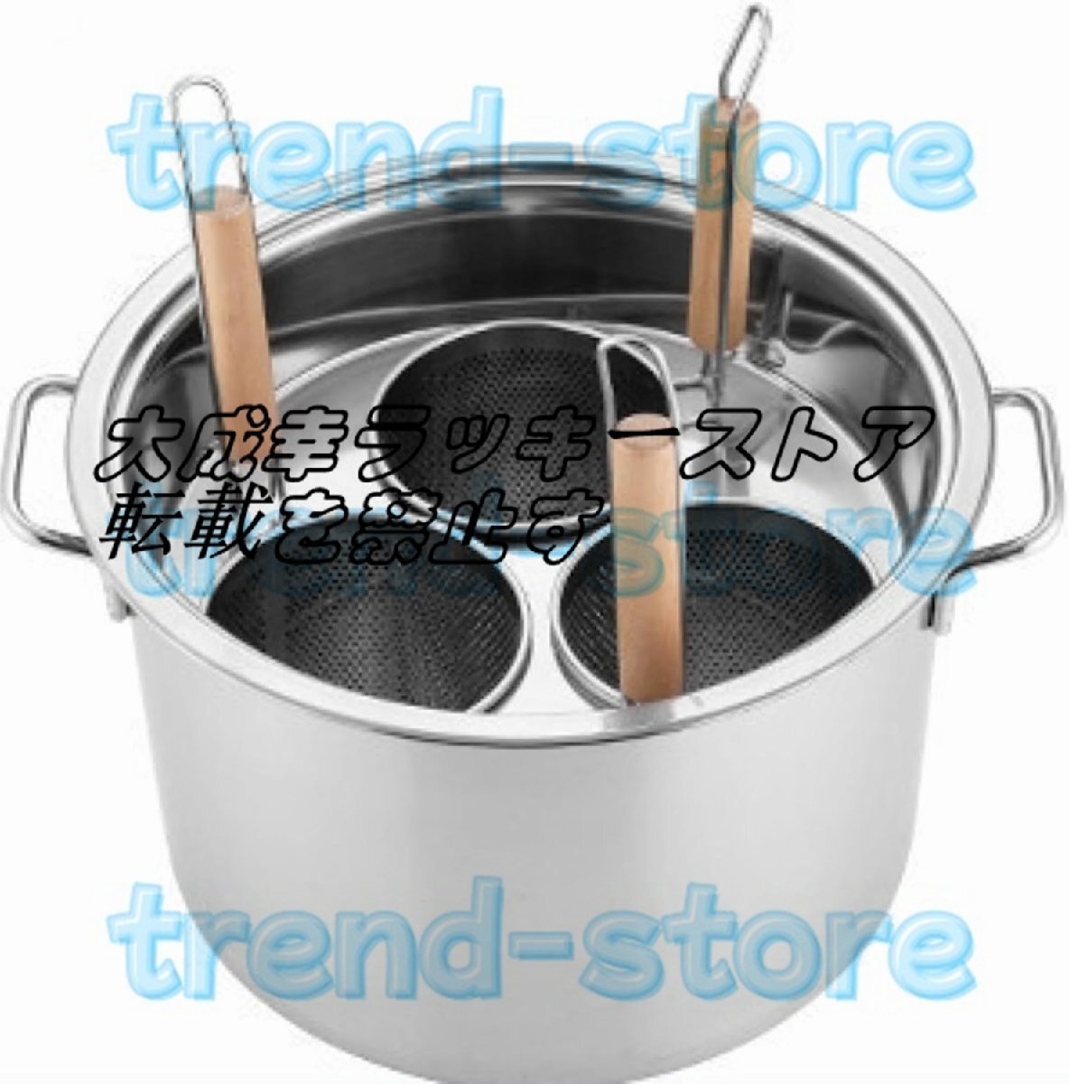 - 業務用店舗用 そばゆで釜 茹麺鍋セット リング付 ザル付 3*13cm ステンレス IH対応 ふきこぼれない 3穴 z998