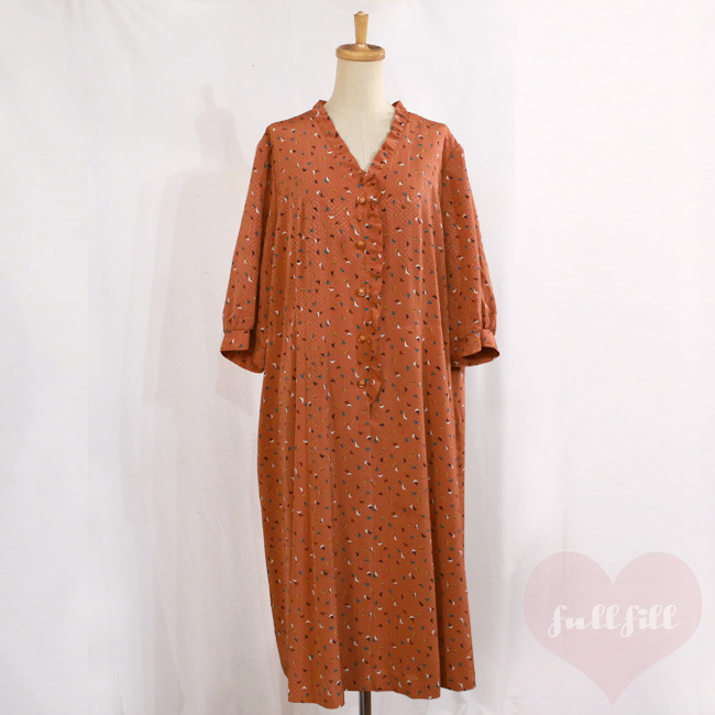 - ワンピース 古着 昭和 レトロ テラコッタ フリル vintage ビンテージ ヴィンテージ 70s 80s カラフルポップ レトロポップ レディース古着
