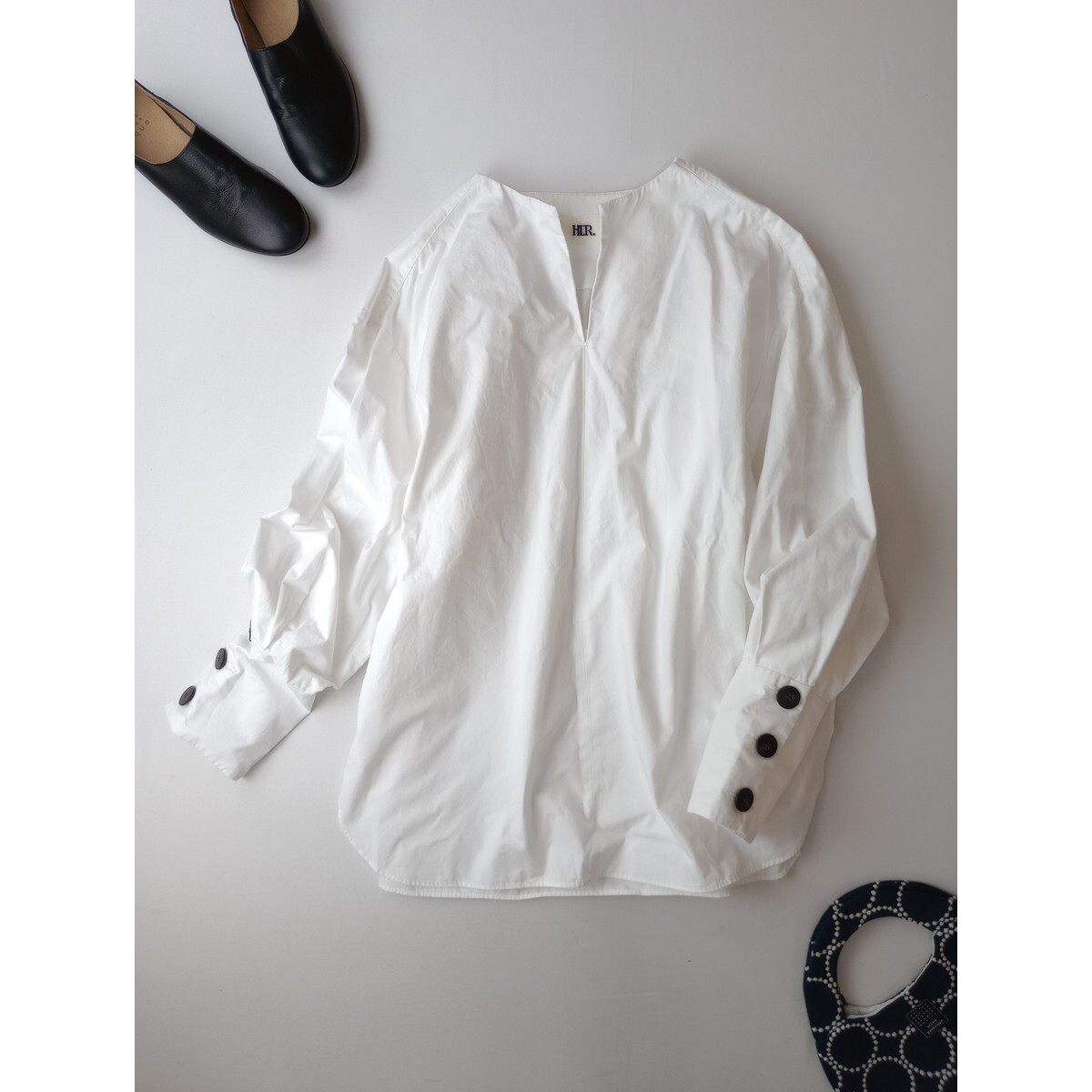 > HER. ハー enchainement アンシェヌマン バック ギャザー ブラウス コットン プルオーバー 長袖 ブラウス トップス 白