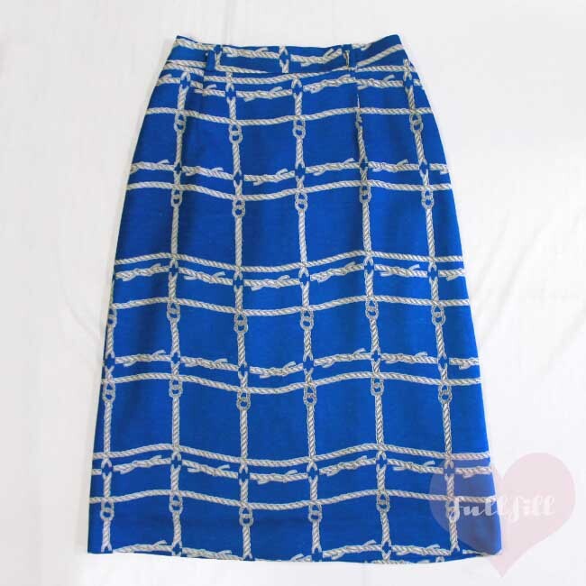 > スカート 古着 昭和 レトロ ブルー 青 ロープ柄 ビンテージ ヴィンテージ vintage 派手 ポップ カラフル レディース古着 used タイト