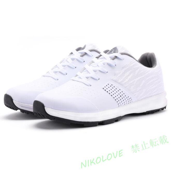 - 新品メンズゴルフシューズ スニーカー 防滑耐磨 強いグリップ スパイク靴 ワイド ソフトスパイク スポーツシューズ 白 LD921