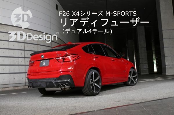 - 3Dデザイン BMW F26 X4シリーズ Mスポーツ (-2018y) リア ディフューザー(デュアル4テール) カーボン 3108-22621 日本製 3Ddesign