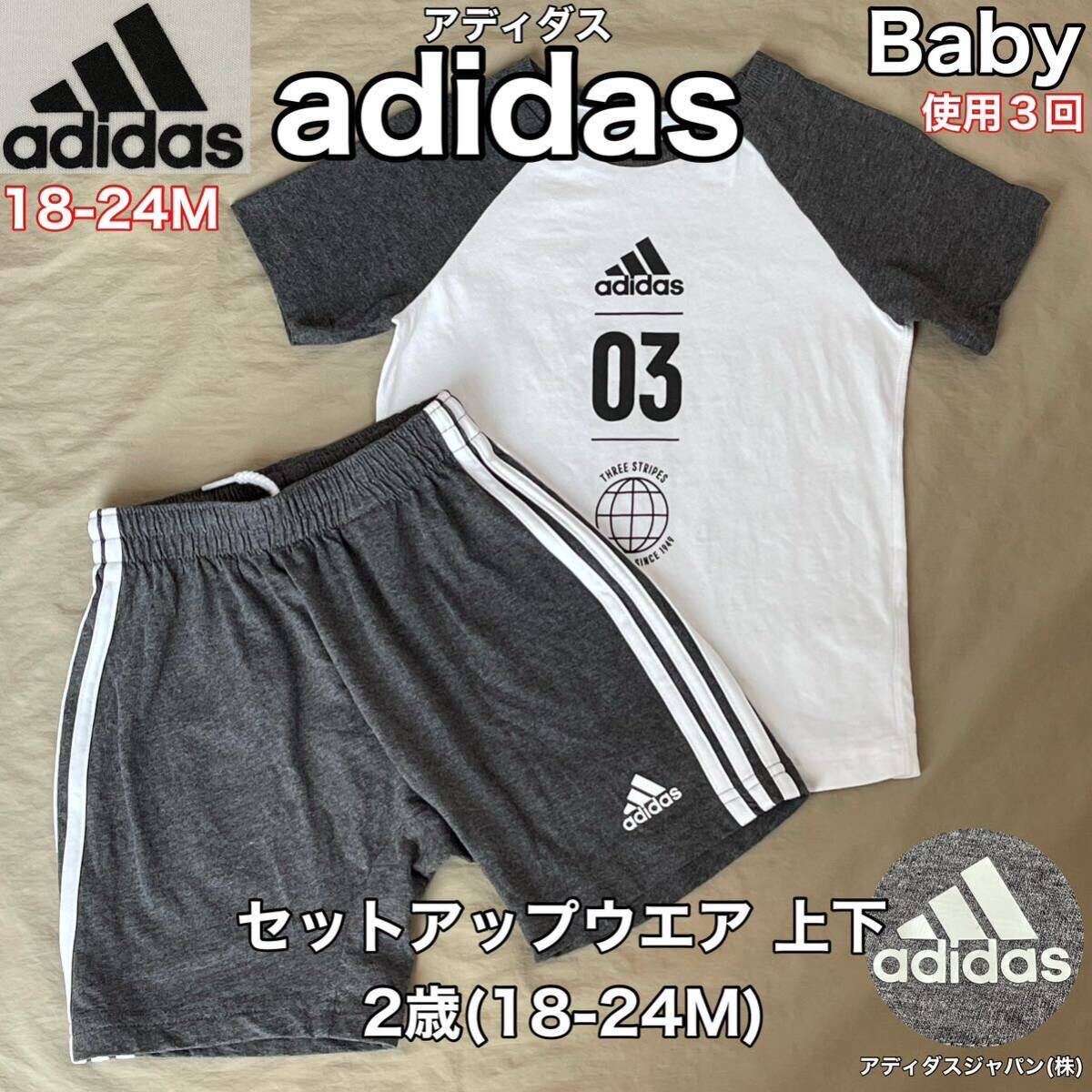 - 超美品 adidas(アディダス) ベビー キッズ セットアップ ウエア 上下 18-24M 2歳 使用3回 ホワイト グレー アディダスジャパン(株)