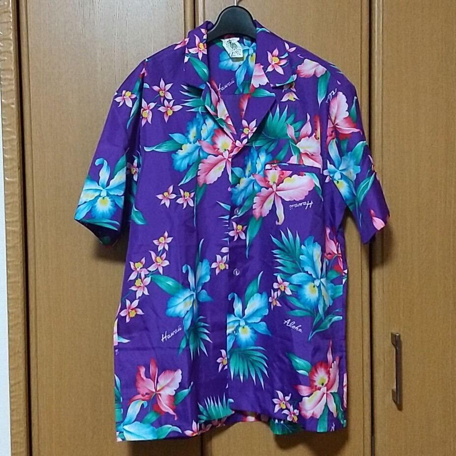 - ROYAL CREATIONS ロイヤルクリエイション アロハシャツ 半袖シャツ パープル 紫 花柄 トロピカル柄 Mサイズ