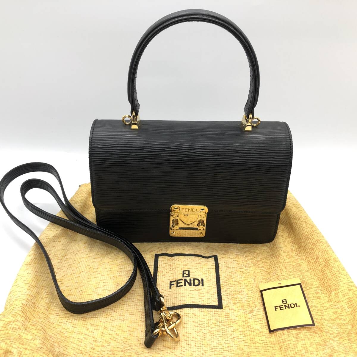 - FENDI フェンディ 2way ハンド ショルダー ワンハンドル バッグ 鞄 エピ レザー ブラック ゴールド金具 タグ 布袋