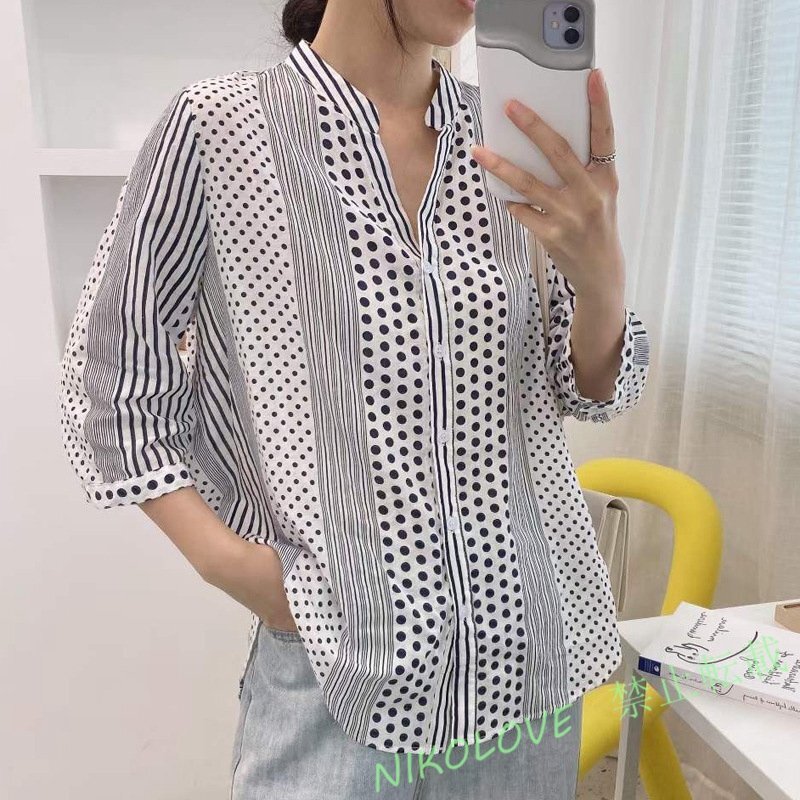 > 新品夏~ブラウス シャツ 綿麻 前開き チュニック プリント柄 七分袖 キレイめ ナチュラル 着せ 大人可愛い トップス~ブラック~L LC313
