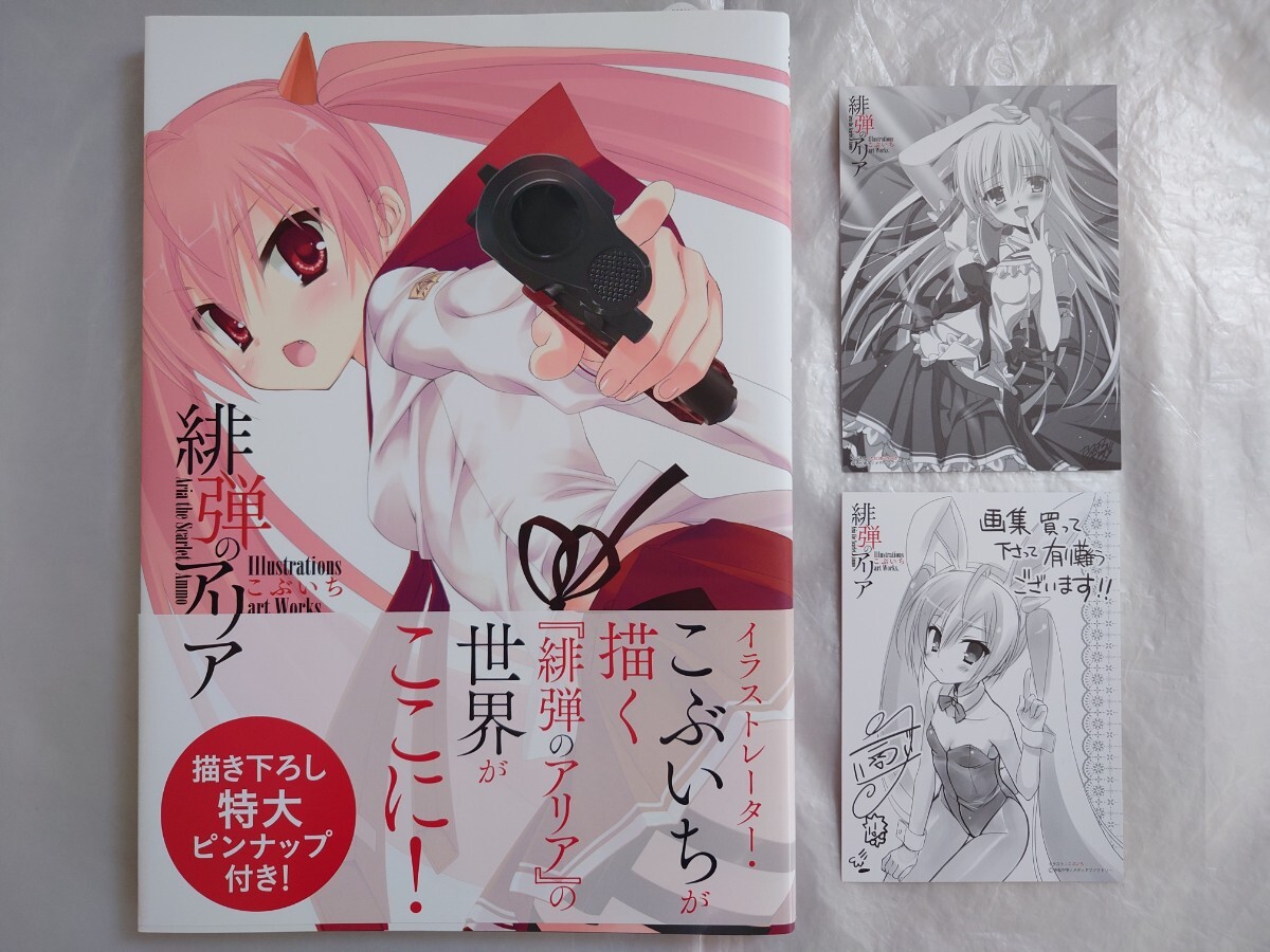 - ☆緋弾のアリア 画集 こぶいち アートワークス 帯付き 初版発行本 店舗特典こぶいち たにはらなつきイラストカード2枚付き