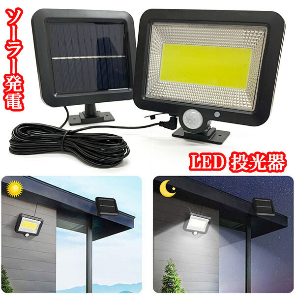 - LED投光器 ソーラーライト COB100 防犯 防災 街路灯 外灯 人感センサー 駐車場 ガレージ 白色