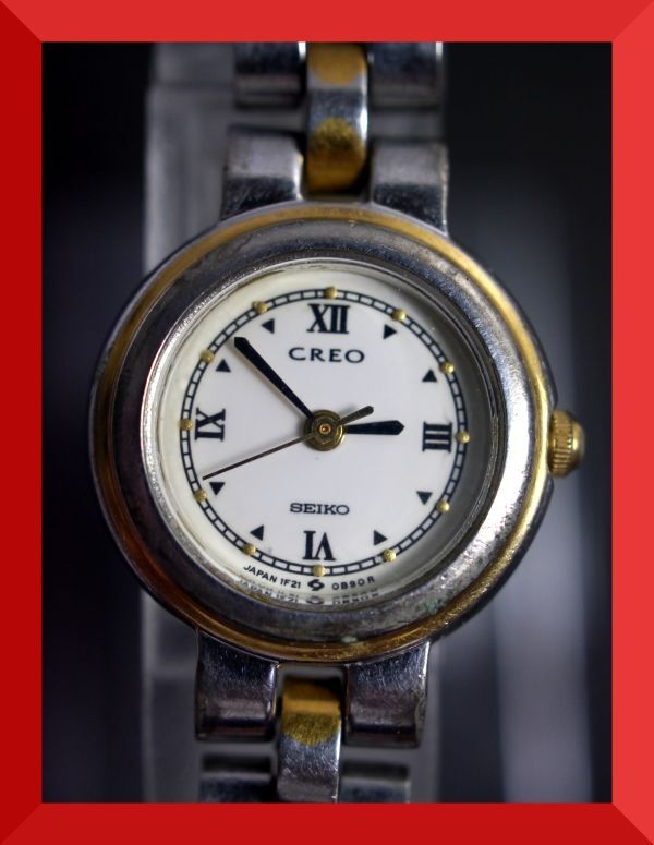 - セイコー SEIKO クレオ CREO クォーツ 3針 純正ベルト 1F21-0A90 女性用 レディース 腕時計 y73 ジャンク 稼働品
