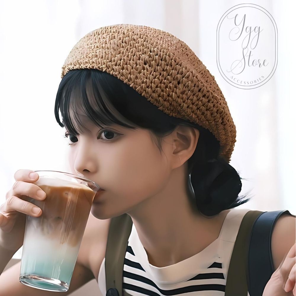 - YGG★ベレー帽 レディース ペーパーハット 麦わら 春夏 サマーベレー ハット 涼しい 日焼け対策 サイズ調整 帽子 韓国 ナチュラル 黒