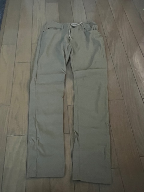 > 新品 オールシーズン スリムパンツ ストレッチ ベージュ 後ろゴム仕様 Mサイズ ゴルフ スマホポケット付