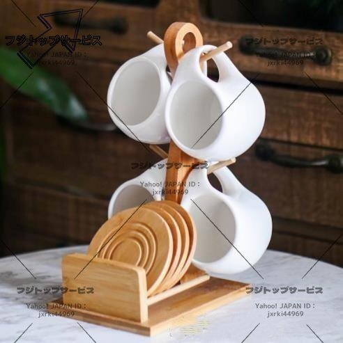> 高品質★陶器のコーヒーカップのセットの四点組のカップ皿のセットの水カップ家庭用竹木の棚