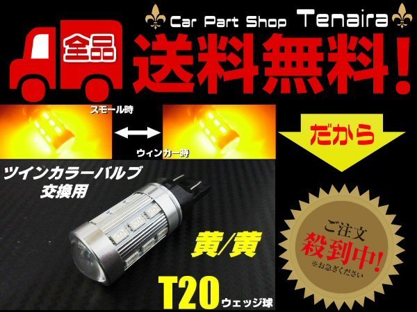 - T20 ツインカラー LED バルブ のみ 1球 黄 黄 アンバー 交換用 ウィンカー ポジション ウィポジ 予備 球切れ 修理 メール便送料無料/1
