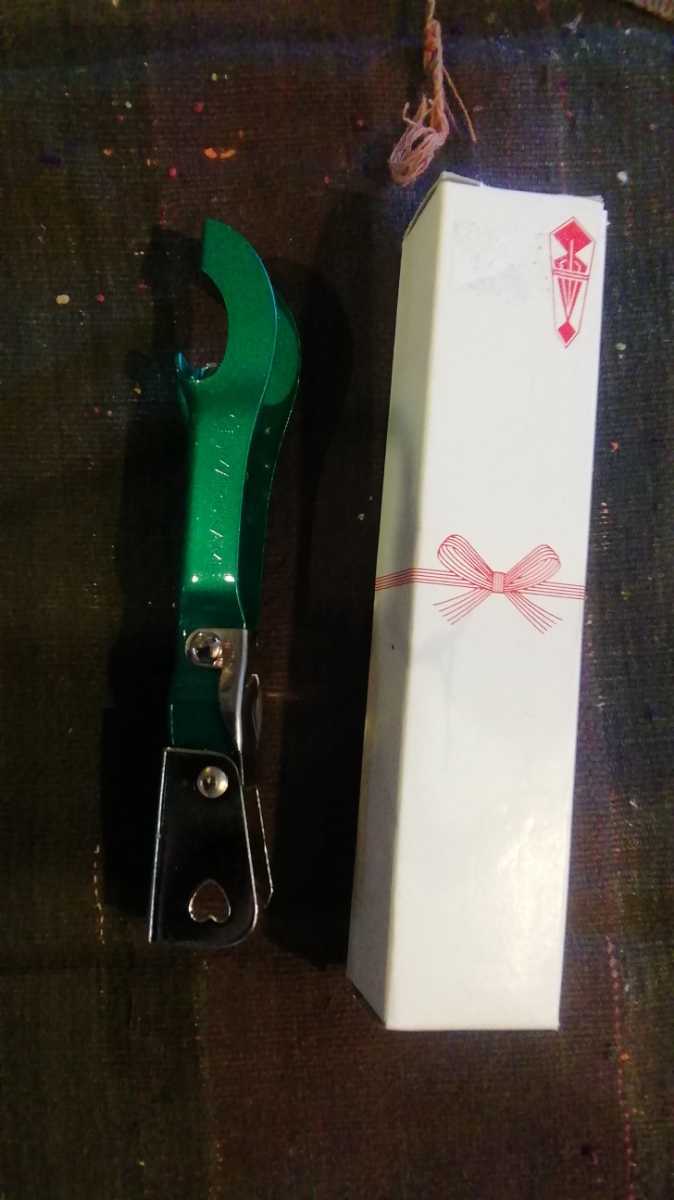 > 万能缶切り マルカメ MARUKAME 緑 L13cm2x2.5cm 栓抜き 缶切り ハート ワインオープナー 新品未使用 金属製