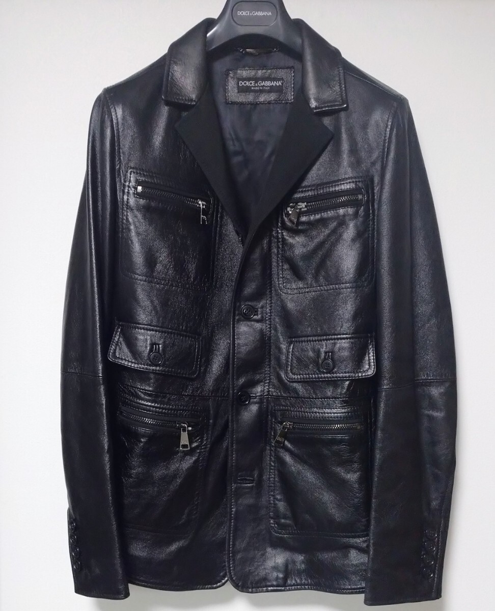 - 新品同様 ドルチェ&ガッバーナ ラムレザージャケット マルチポケット 黒 46