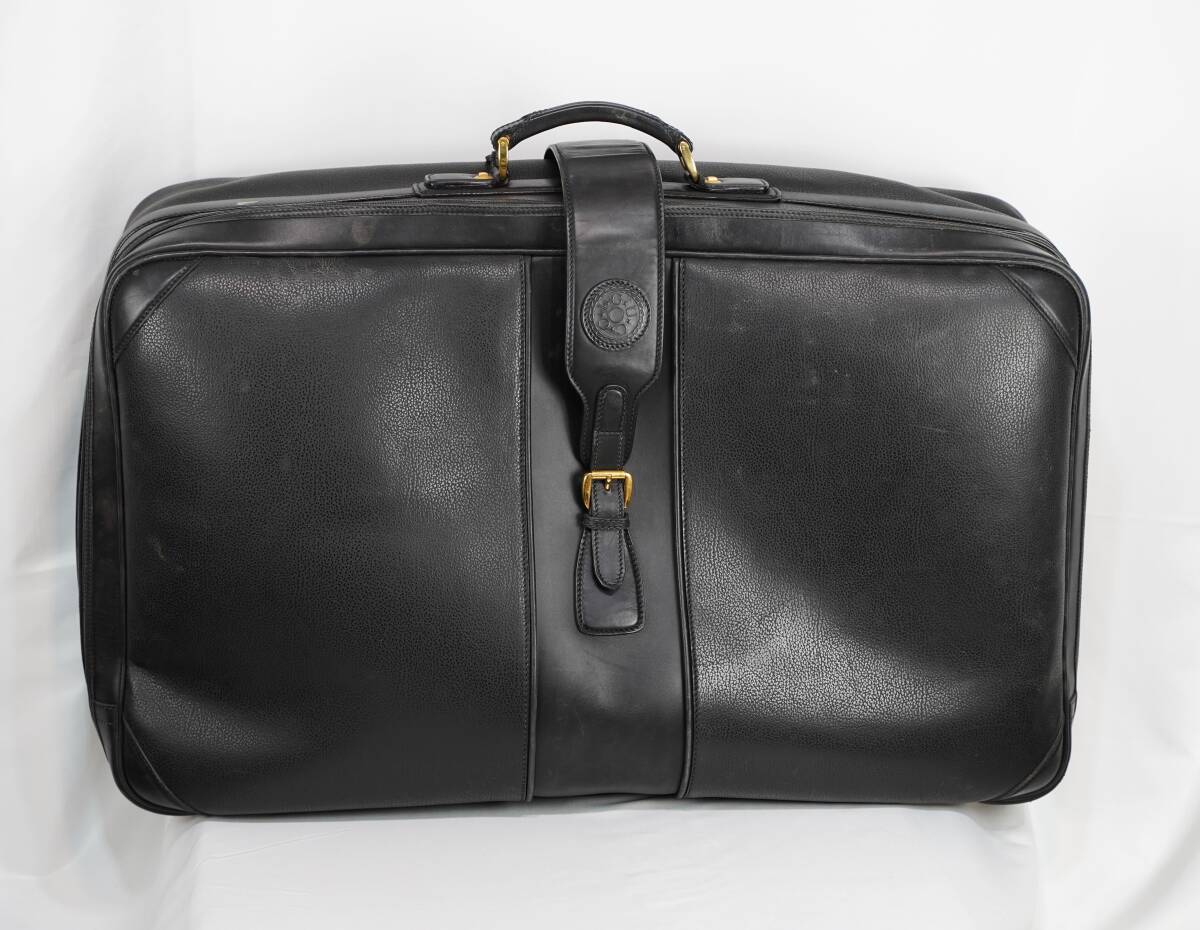 - GUCCI グッチ イタリア製 高級 ブラックレザー バッグ 鍵付き ラウンドファスナー ベルト留め ヴィンテージ オールド