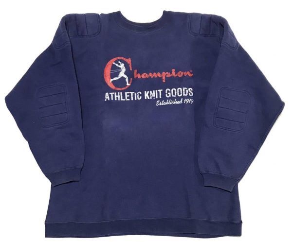> 【90s】USA製 Champion チャンピオン ヴィンテージ リバースウィーブ スウェット メンズ XXL相当 ネイビー ランタグ プリント パット レア