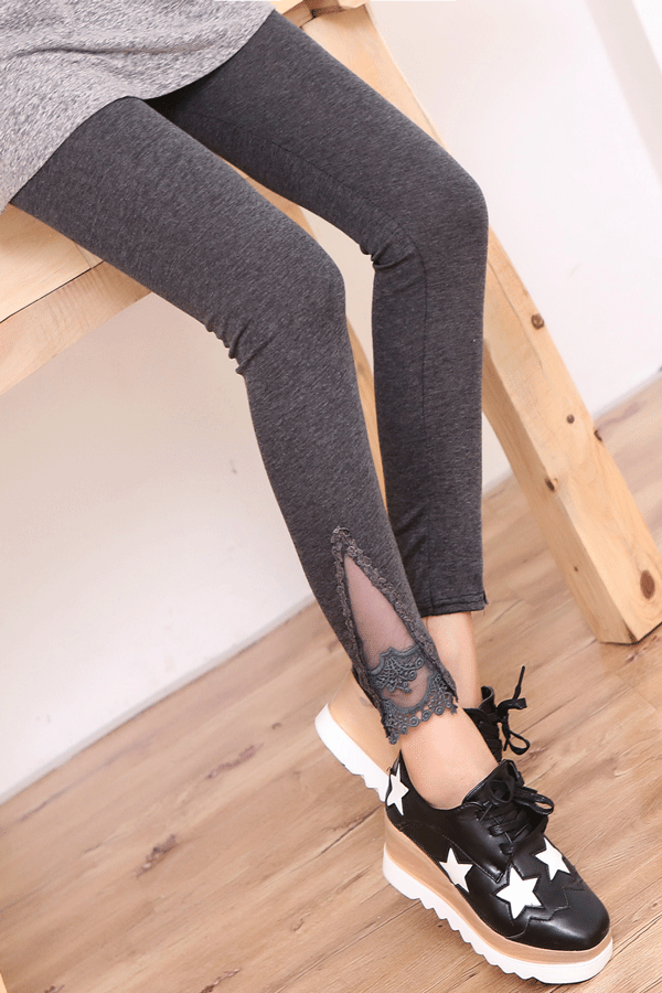 - L1011 セクシー レギンス レディース【ダークグレー】フラワーレース ステッチ かぎ針編み スパッツ カジュアル