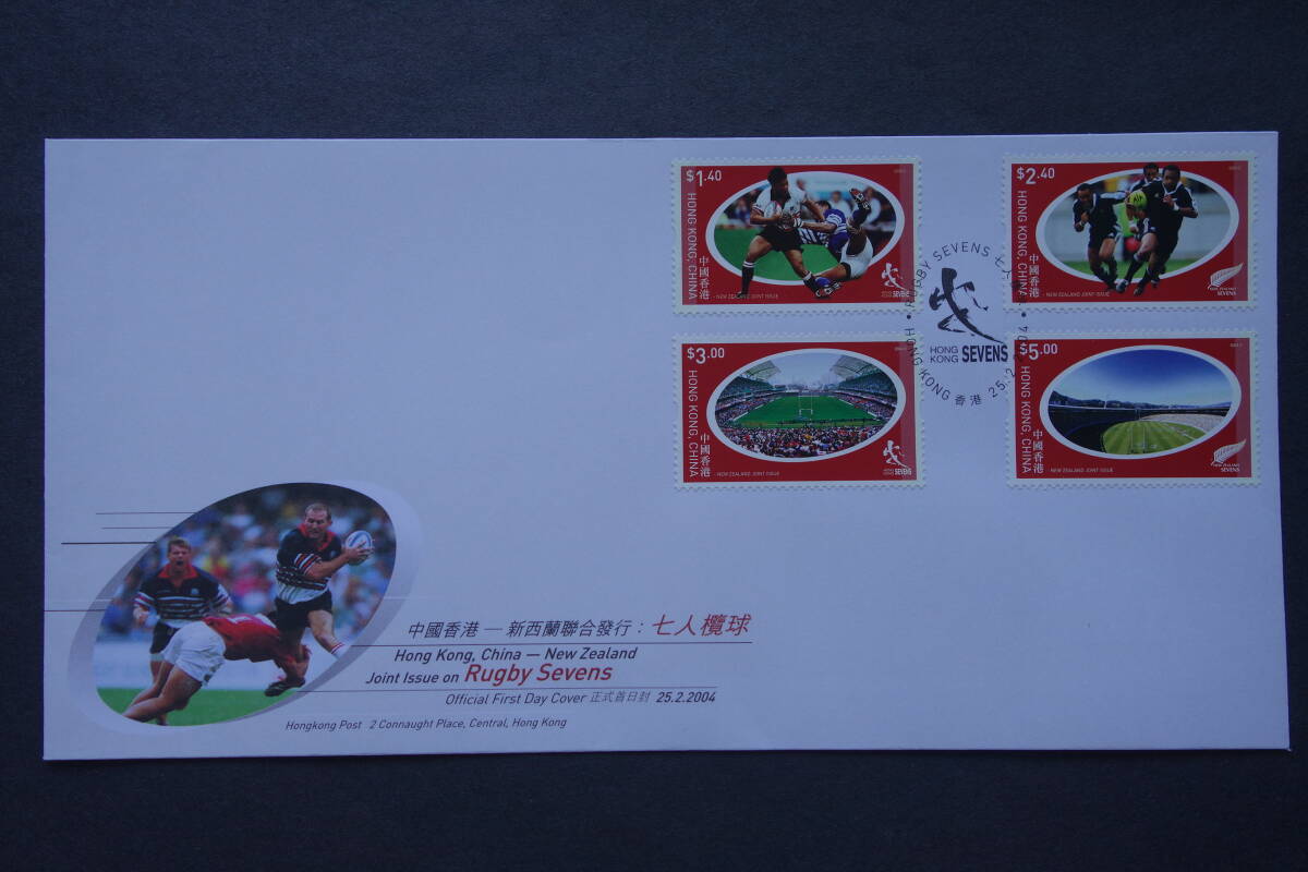 - 外国切手: 中国香港切手「(ニュージーランドとの共同発行) 7人制ラグビー」 4種完 貼り FDC(初日カバー)