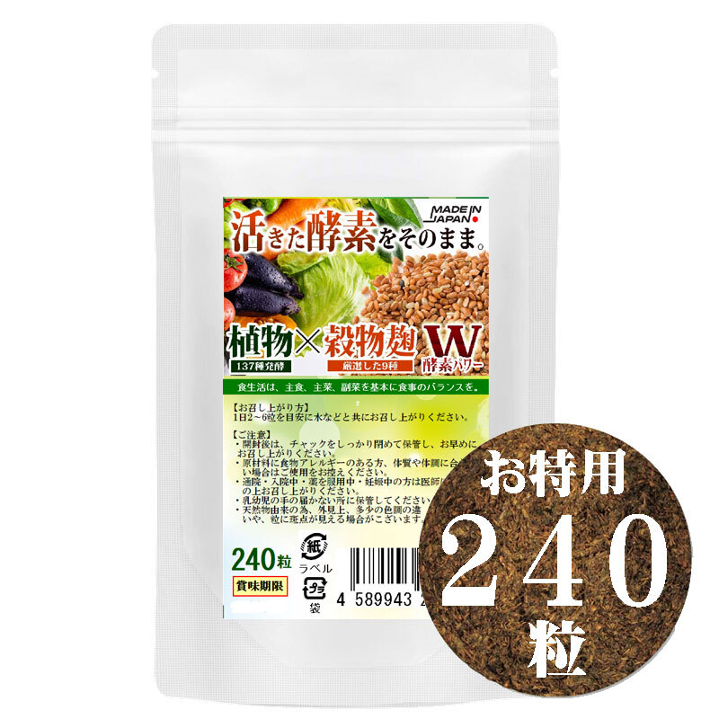 - お特用パッケージ こうじ酵素 麹 酵素サプリ 酵素麹粒 240粒 熟成137種植物発酵エキス+厳選9種穀物麹 ダブル酵素パワー 約4ヶ月分