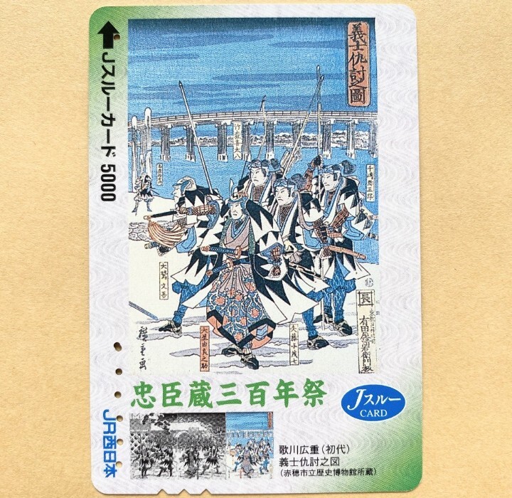 - 【使用済】 Jスルーカード JR西日本 忠臣蔵三百年祭 歌川広重(初代) 「義士仇討之図」