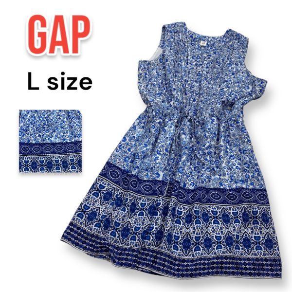 - GAP ギャップ ノースリーブワンピース レディース Lサイズ 青 ブルー 総柄 花柄 柄ワンピース ポリエステル