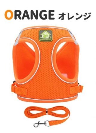 - 【ハーネス リード オレンジ Mサイズ】 犬 おしゃれ 胴輪 小型犬 中型犬 超小型犬 脱げない 首輪 リード リード付き 光る