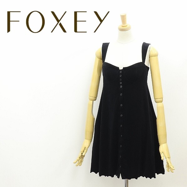 > ◆NATURAL by FOXEY ナチュラル バイ フォクシー ストレッチ ベロア ノースリーブ フレア ミニ ワンピース 黒 ブラック 40