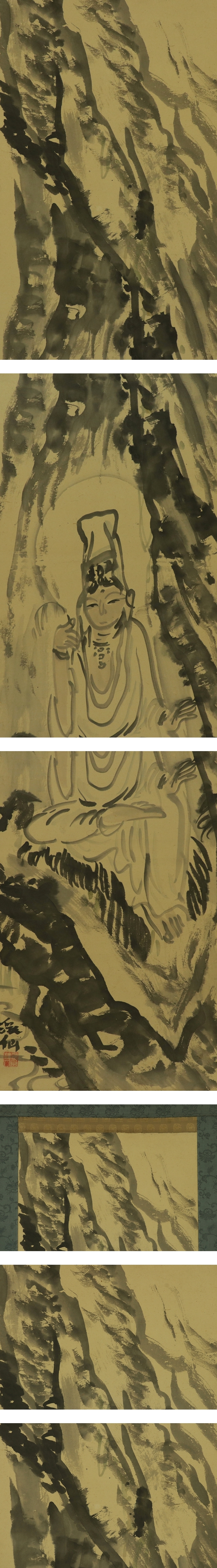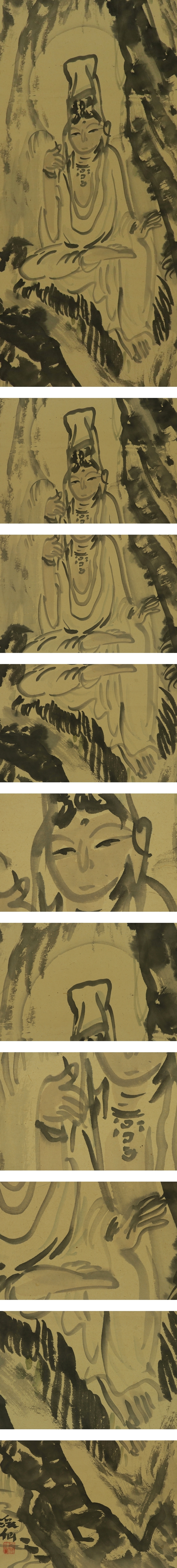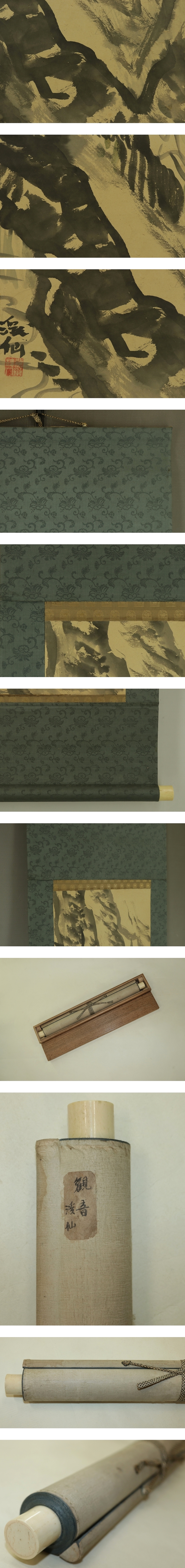 - 【模写】富田渓仙【岩上観音】◆紙本◆合箱◆掛軸 s06053