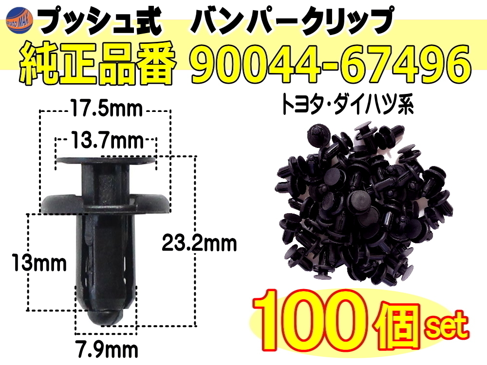 > バンパークリップ 100個 (F) 100個1セット 純正品番 トヨタ ダイハツ 90044-67496 プッシュリベット 内張り トリムクリップ 1