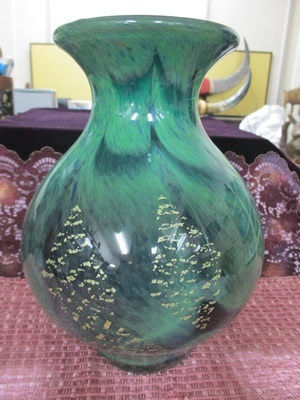 - ☆ガラス 花瓶 ずっしり 綺麗 径12.5㎝ 高さ24㎝ ※汚れキズあり tm2407-21-8☆
