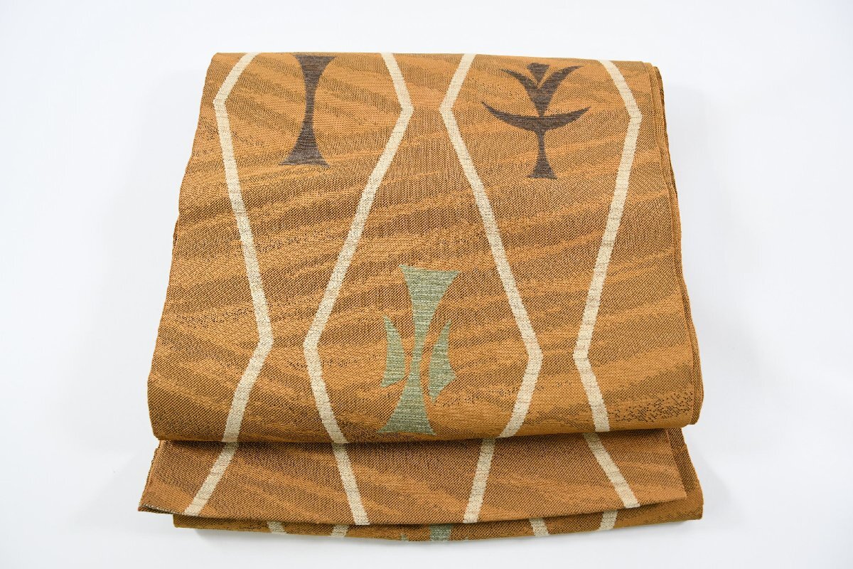 - 袋名古屋帯 幾何学模様 花 帯丈326cm ★着物屋 ne-11394 桜庭呉服店