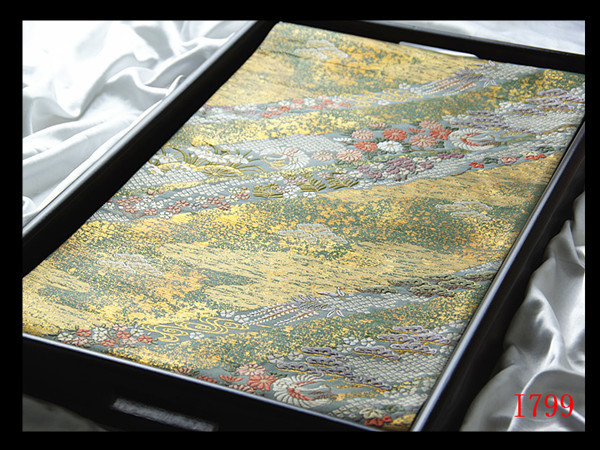 - I799厳選西陣 唐織 引き箔 振袖可 斜取花鳥文様 錆浅葱色地 六通正絹純金糸高級美術袋帯 ◇検◇簪着物名古屋帯帯締め