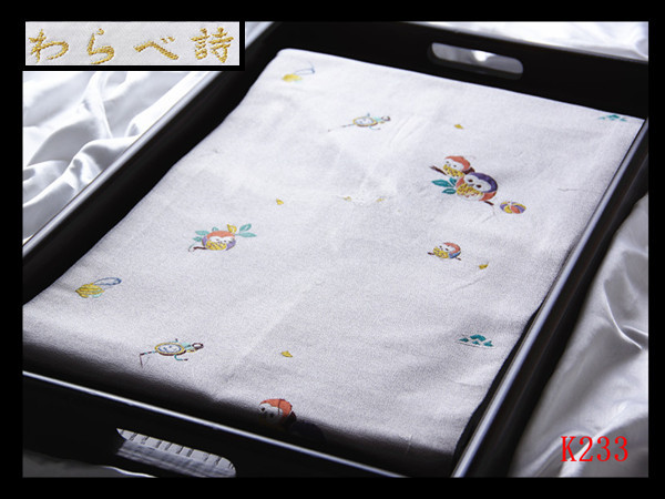 - K233厳選西陣 手織り わらべ詩 月白色地 気品豊かに 高級美術正絹純金糸名古屋帯 ◇検◇簪着物袋帯帯締め