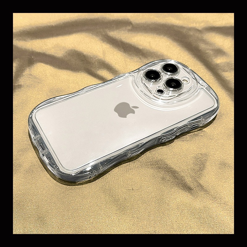 - iPhone 15 Pro用 クリアスマホケース しっかり手にフィットする波型サイドケース 透明 PU素材 新品