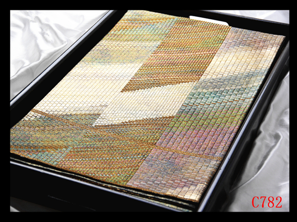 - C782厳選西陣 手織 幽玄な煌めき 幾何文様 六通高級正絹純金糸美術袋帯 ◇検◇簪着物名古屋帯帯締め