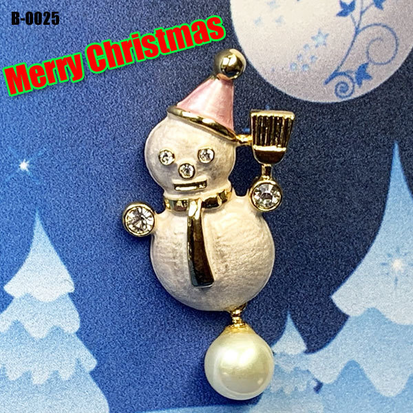 - X'mas 雪だるま W ゆらゆら ピンバッチ クリスマス スノーマン パーティー/ホワイト/ピンク◇パール◇B-0025
