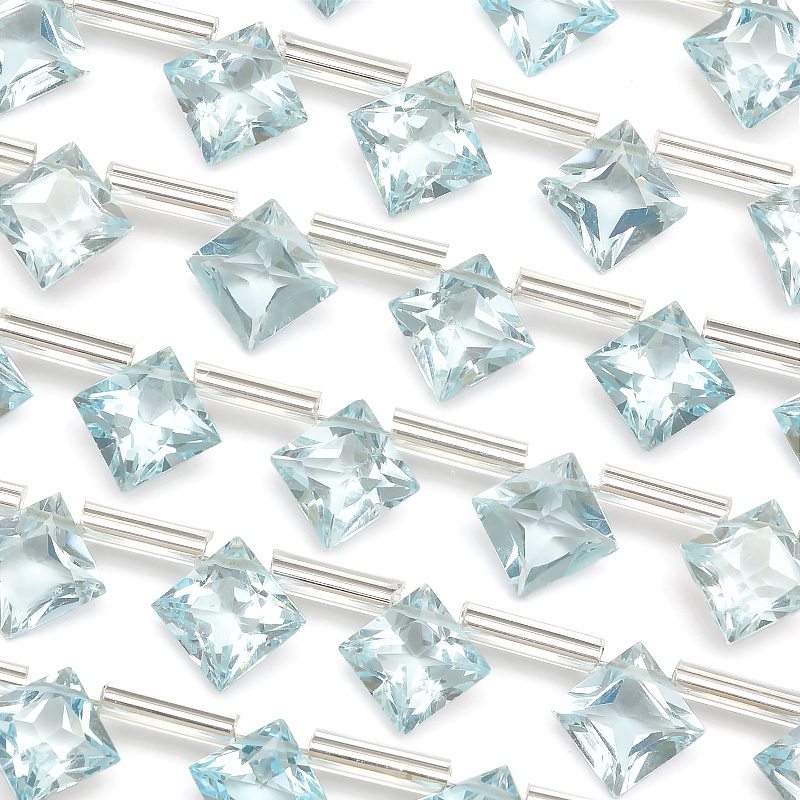- スカイブルートパーズ スクエアファセットカット 6mm[プレミアムカット]【1連販売】 / 9-57 TP6SQ-X
